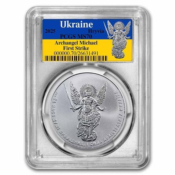 2025年ウクライナ1オンス銀貨大天使ミカエルMS-70 PCGSファーストストライク