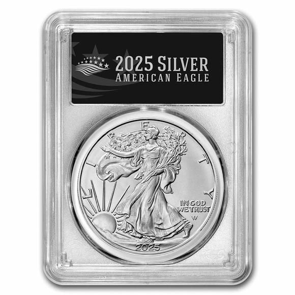 2025-(W) アメリカン シルバー イーグル MS-70 PCGS (FDI、ブラックラベル)