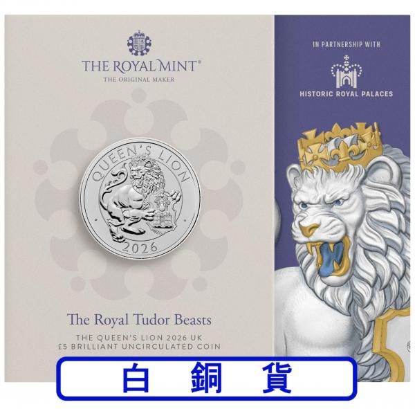2026 イギリス ロイヤルチューダービースト:クイーンズライオン 白銅貨(銅・ニッケル合金) 5ポンド 新品未使用