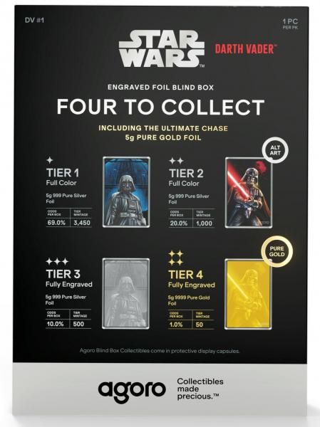 ティア4には、究極のチェイス、999純金にダース・ベイダーのフルエングレービングが施されています。