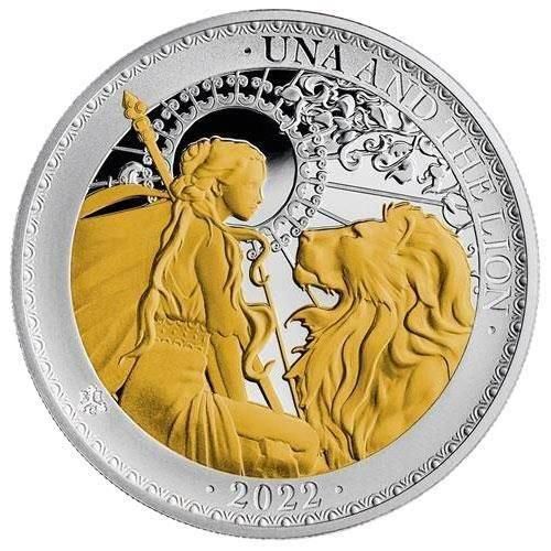 【女神左座位】 現代版 2022 1オンス セントヘレナ ウナとライオン 1ポンド銀貨 プルーフ・一部金メッキ 【Proof】【特選】