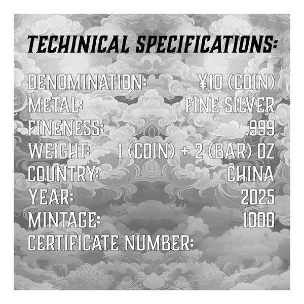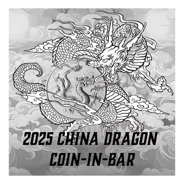 ・2025 3oz China Dragon .999 Silver Coin in Bar