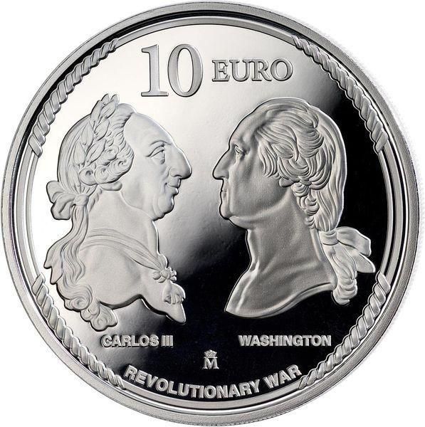 2025 27g Spain CARLOS III AND GEORGE WASHINGTON Revolutionary War 250th Anniversary Silver Coin 10Euro