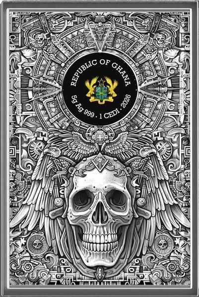 2026 5g Ghana SKULL OF THE FIFTH SUN Silver Foil 1 Cedi