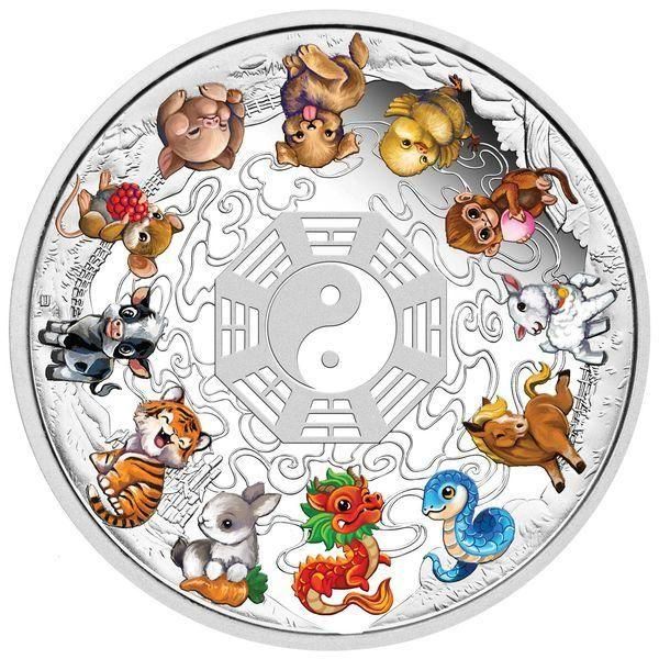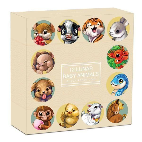 2025 5oz Tuvalu Twelve Baby Lunar Animals Silver Proof Coloured Coin