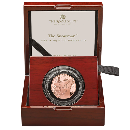 2025 15.5g England The Snowman UK 50p Gold Proof Coin