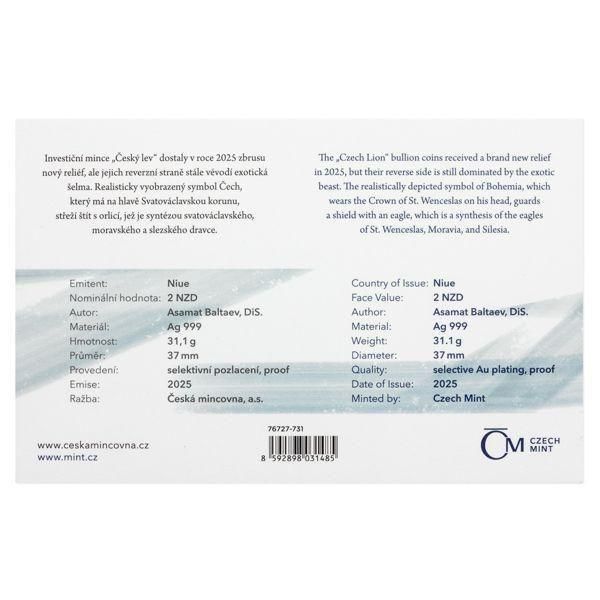 2025 1oz Niue Silver 1 oz bullion coin Czech Lion gold plated proof numbered
