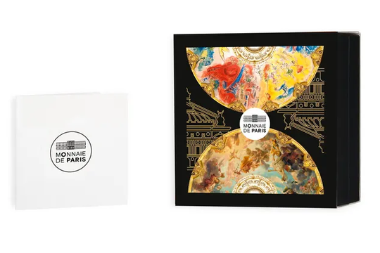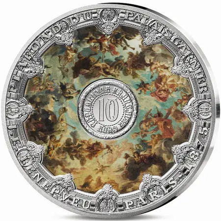 ¤³¤Î¿§ÉÕ¤­¥³¥¤¥ó¤ÎɽÌ̤ˤϡ¢¥¢¥ó¥É¥ì¡¦¥Þ¥ë¥í¡¼¤Î°ÍÍê¤Ç 1964 ǯ¤Ë³«´Û¤·¤¿¥¬¥ë¥Ë¥¨µÜ¥ª¥Ú¥é¥Ï¥¦¥¹¤Î¥á¥¤¥ó ¥Û¡¼¥ë¤ÎÅ·°æÍѤ˥ޥ륯¡¦¥·¥ã¥¬¡¼¥ë¤¬ÉÁ¤¤¤¿¥Õ¥ì¥¹¥³²è¤¬ÉÁ¤«¤ì¤Æ¤¤¤Þ¤¹¡£¥³¥¤¥ó¤ÎÃæ±û¤Î¥á¥À¥ê¥ª¥ó¤Ï¡¢¥Û¡¼¥ë¤ò¾È¤é¤¹Â礭¤Ê¥·¥ã¥ó¥Ç¥ê¥¢¤Ë±£¤ì¤Æ¤¤¤ë¤¿¤á¡¢Ä̾¥¬¥ë¥Ë¥¨µÜ¤òˬ¤ì¤ë¿Í¤Ë¤Ï¸«¤¨¤Þ¤»¤ó¡£