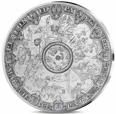 ¤³¤Î¥³¥¤¥ó¤ÎɽÌ̤ˤϡ¢¥¢¥ó¥É¥ì¡¦¥Þ¥ë¥í¡¼¤Î°ÍÍê¤Ç 1964 ǯ¤Ë³«´Û¤·¤¿¥¬¥ë¥Ë¥¨µÜ¥ª¥Ú¥é¥Ï¥¦¥¹¤Î¥á¥¤¥ó¥Û¡¼¥ë¤ÎÅ·°æÍѤ˥ޥ륯¡¦¥·¥ã¥¬¡¼¥ë¤¬ÉÁ¤¤¤¿¥Õ¥ì¥¹¥³²è¤¬ÉÁ¤«¤ì¤Æ¤¤¤Þ¤¹¡£¥³¥¤¥ó¤ÎÃæ±û¤Î¥á¥À¥ê¥ª¥ó¤Ï¡¢¥Û¡¼¥ë¤ò¾È¤é¤¹Â礭¤Ê¥·¥ã¥ó¥Ç¥ê¥¢¤Ë±£¤ì¤Æ¤¤¤ë¤¿¤á¡¢Ä̾¥¬¥ë¥Ë¥¨µÜ¤òˬ¤ì¤ë¿Í¤Ë¤Ï¸«¤¨¤Þ¤»¤ó¡£