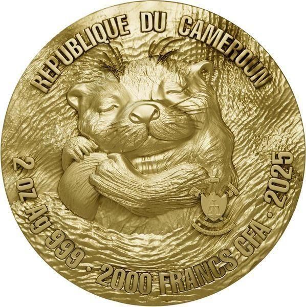 2025 2oz Cameroon OTTER Cute Animals Gilded Silver Coin 2000 Francs