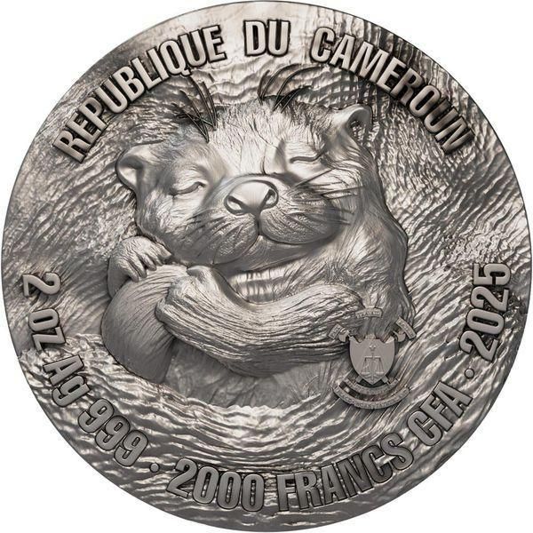 2025 2oz Cameroon OTTER Cute Animals Silver Coin 2000 Francs
