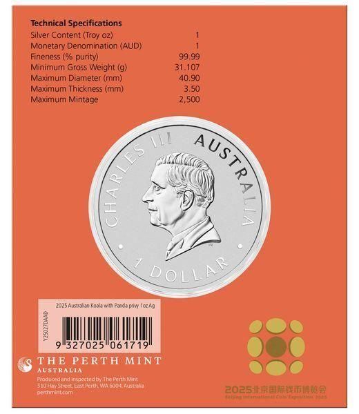 2025 1oz Australia Beijing International Coin Expo Special Australian Koala Silver Coin with Panda Privy