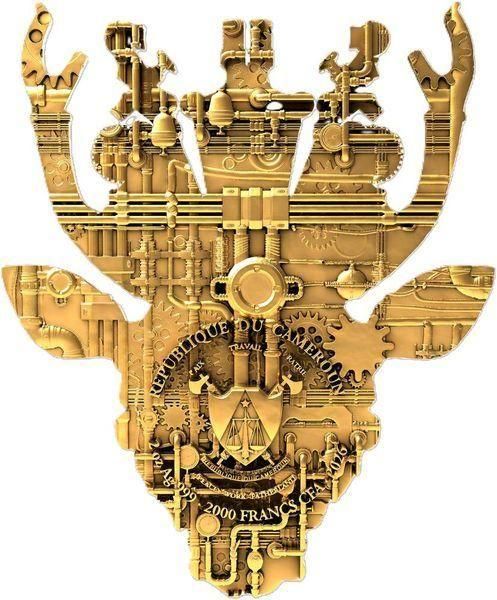 2026 2oz Cameroon MECH ANTLERS Steampunk Allegiance Gilded Silver Coin 2000 Francs