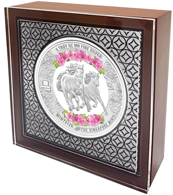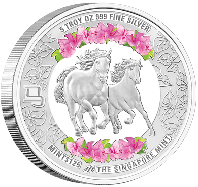 2026 5oz Singapore Lunar Horse 999 Fine Silver Proof Colour Medallion